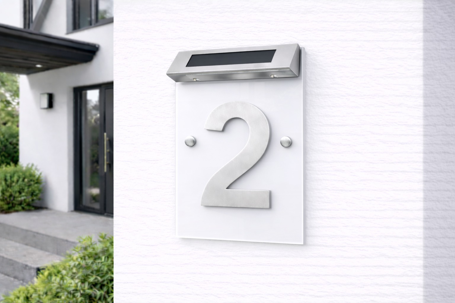 Die Hausnummer wird mit passendem Montagematerial geliefert und lässt sich schnell und unkompliziert an der Hauswand befestigen.